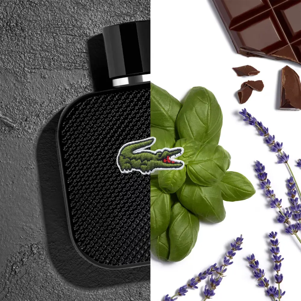 L’Eau de Toilette L.12.12 Noir, inspirée du polo iconique Lacoste, révèle une masculinité contemporaine à travers une fragrance fougère aromatique. Évoquant des souvenirs de nuits estivales, la fragrance s’ouvre sur des notes rafraichissantes de pastèque, basilic, lavande et verveine, avant de finir sur un fond sensuel des notes de chocolat noir, cashmeran et patchouli.Désormais disponible dans un nouveau flacon et un nouvel étui mettant en avant le motif iconique ‘petit piqué’, pour évoquer la matière du polo.